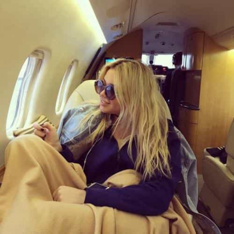 На фото: девушка возвращается в частном самолете из украинского Борисполя, где снимался очередной клип