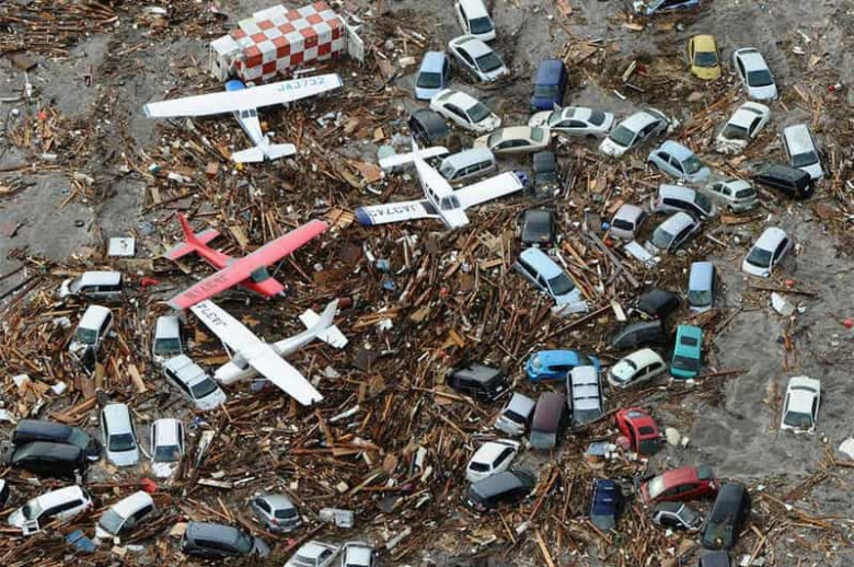 Аэропорт Сендаи был практически полностью уничтожен цунами вместе с одноименным городом. Вода дошла до второго этажа технических зданий, уничтожив все электрооборудование. Пассажиры, запертые наступающей водой в верхних этажах здания аэровокзала, вынуждены были провести там двое суток, пока 13 марта их не выручили спасатели. Вместе со спасателями пришли военные: инженерные войска за 4 дня сделали аэропорт пригодным для приема самолетов, доставлявших в Японию гуманитарные грузы для помощи пострадавшим.