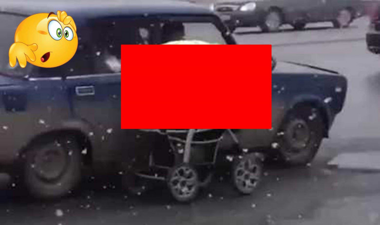 ВИДЕОВ Челябинске ошеломленный прохожий заснял крайне необычный способ выгуливания ребенка: пассажир темно-синей Лады, двигающейся по оживленному шоссе через центр города, тащил за собой детскую коляску.