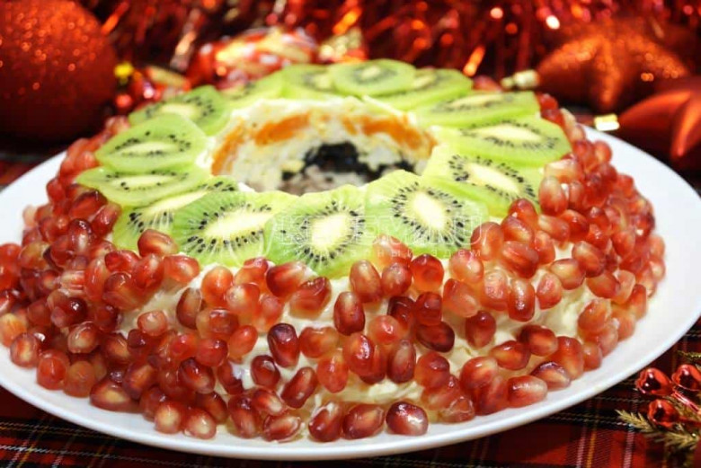 Առաջին շերտով շարել հավի միսը, ավելացնել սալորաչիրը, քերեշ ձուն ու ավելացնել մայոնեզը, ավելացնել եփած, քերած գազարը, պանիր քերել, կրկին մայոնեզ անել, զարդարել կիվիով ու նուռով: