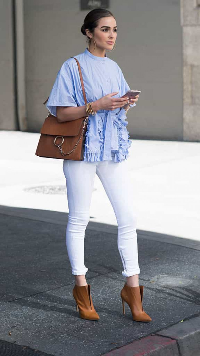 Белый деним выгодно освежает любой лук и удачно сочетается с разными стилями: гламурным, сексуальным и расслабленным. Можно носить такие джинсы с белым верхом, как это делает Джиджи Хадид, можно дополнять топами в морском стиле, как у Оливии Палермо, либо играть на контрасте, добавляя к ним хищные принты, как показывает Ферджи.