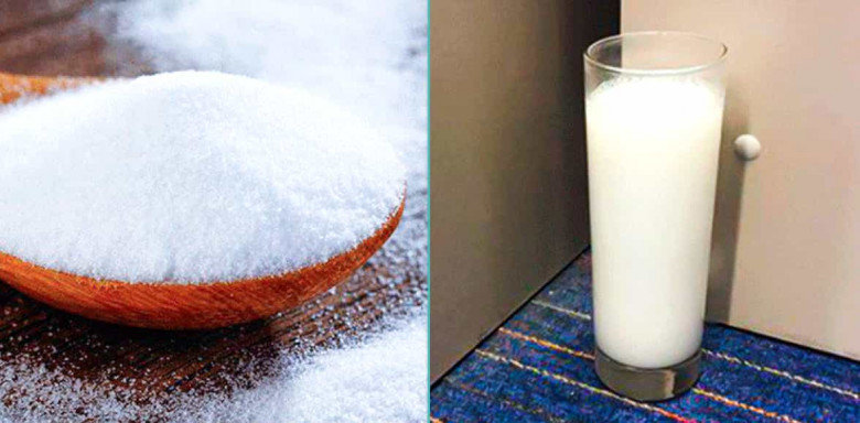Наливаете в стакан воду и сыплете туда несколько столовых ложек соли и одну — уксуса.