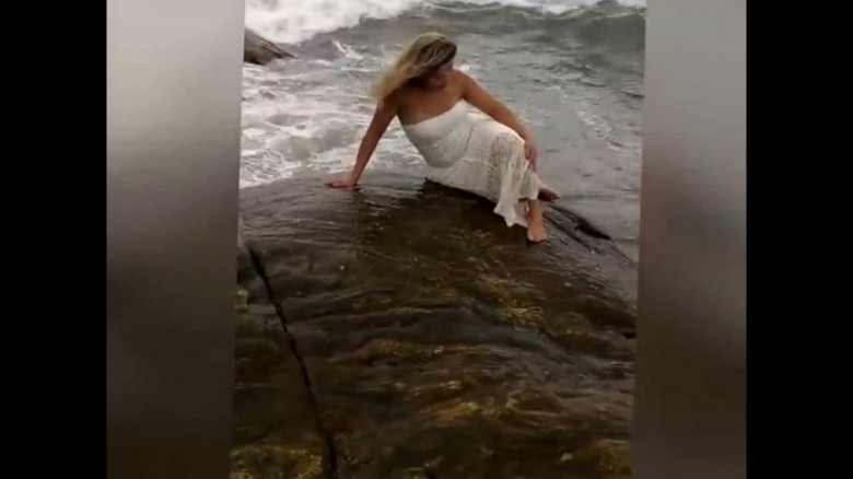 ВИДЕО“В тот день мы с мужем отдыхали на пляже, и я решила сфотографироваться на скале, — рассказывает Розангела. — Я и не знала, что муж в тот момент записывал видео. Когда я позировала, он начал кричать мне о волне, которая буквально застала меня врасплох!”