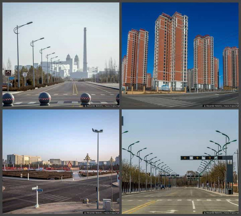 «Так выглядит Китай будущего. На улицах и площадях ни души, пустуют офисы, торговые центры. Многоэтажные дома ждут жителей, которые не спешат в них заселяться. Кангбаши — самый большой в мире город-призрак. Чтобы оценить размеры, представьте Казань или Самару без людей.