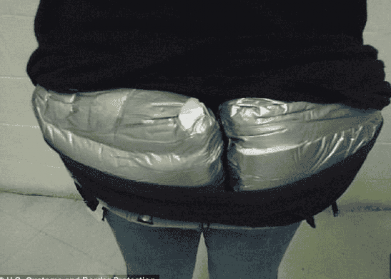 Как сообщает Daily Mail, 47-летняя женщина привязала сзади два пакета с героином таким образом, чтобы под одеждой они создали видимость плотных, пусть и несколько неказистых ягодиц.