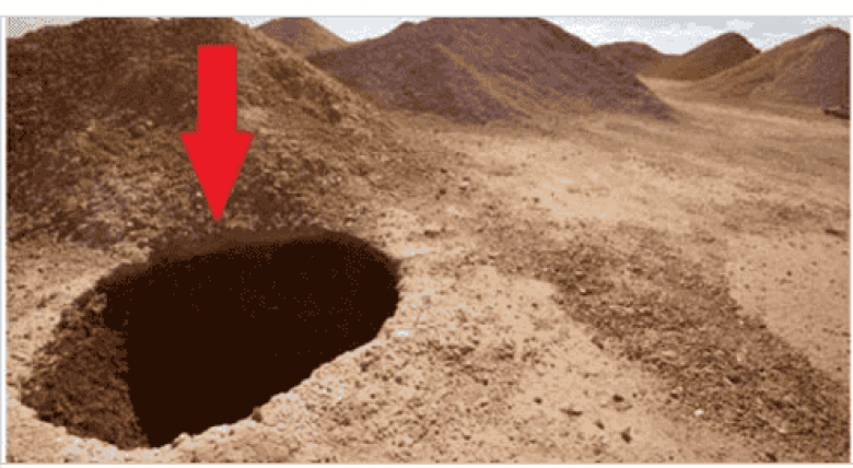 В окрестностях городка расположено немало знаков вроде этого. Опасность провалиться вниз, под обжигающую землю австралийской пустыни, здесь вполне реальна.