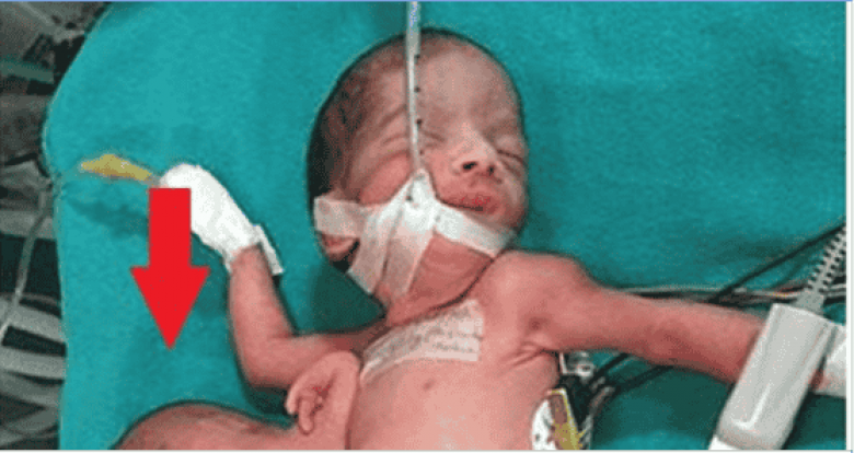 Матерью ребенка была 21-летняя индианка, у которой при УЗИ выявили близнецов, однако врачи не смогли понять, что от второго ребенка осталась лишь голова. При родах женщина испытывала большие проблемы и даже возникла угроза жизни матери и ребенка. Врачи пообещали сохранить жизнь обоим, но муж попросил уделить максимальное внимание его жене. Понимая сложность родов, врачи решились на кесарево сечение и только тогда увидели аномалию в развитии младенца.