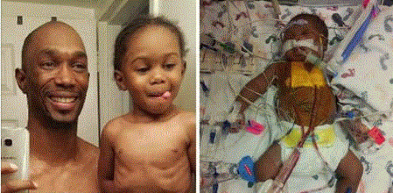 “У моего сына в животе трубка. На этом фото он показывает, что у него такой же пресс, как и у меня. Но все, что вы видите, – это его маленькие ребра. Я взял одну из его трубок, чтобы приклеить себе на живот клапан. Пока я жив, он никогда не будет бороться в одиночестве”, – подписал селфи Роберт.