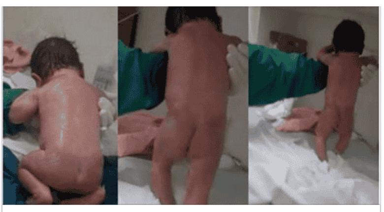 В Индии ребёнок пошёл сразу после родов (Видео)