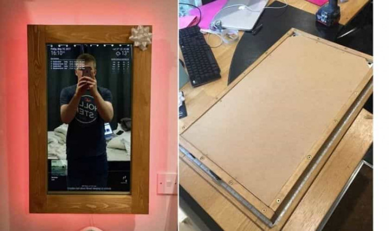 Но как же Toothie96 смог вывести информацию на поверхность зеркала? Он пишет: «Обычные зеркала не пропускают сквозь себя свет». Поэтому парень заказал двустороннее зеркало, позволяющее свету просачиваться. А для дополнительной подсветки Toothie96 обернул рамку светодиодной лентой.