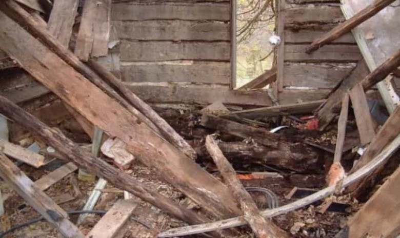 Для начала мужчина рассортировал оставшиеся куски дерева, чтобы нормальные потом можно было использовать в строительстве.