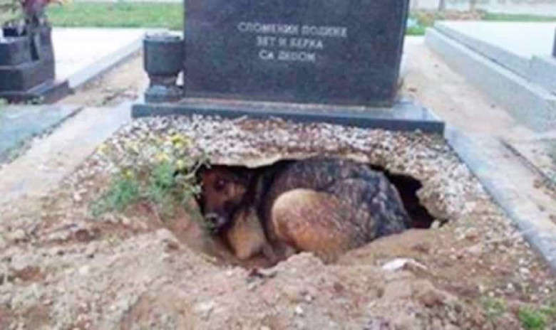 Иногда у собак появляются более прозаичные, но от того не менее важные причины, чтобы лежать на чьей-то могиле. В любом случае эта история получилась весьма трогательной.