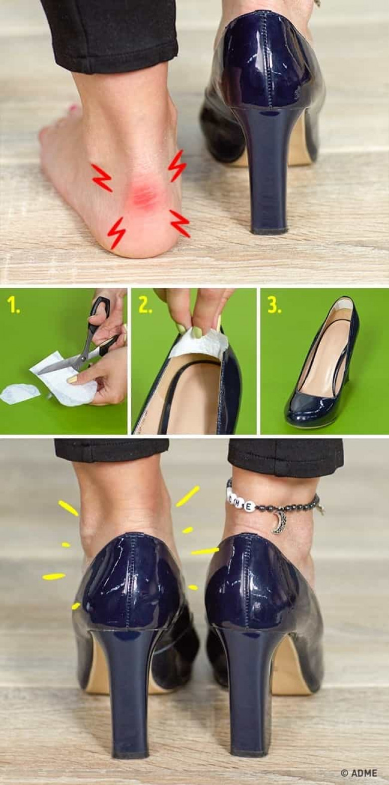 № 2. Если пластыря нет под рукой, вырежьте кусочек из прокладки и приклейте его к обуви, чтобы предотвратить натирание