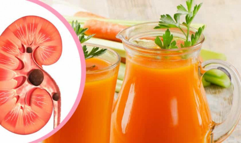 90% -ное содержание воды в огурцах вместе с бета-каротином моркови будет питать ваше тело, снабжать вас необходимыми питательными веществами и вымывать избыток мочевой кислоты, которая, как известно, вызывает почечные камни.
