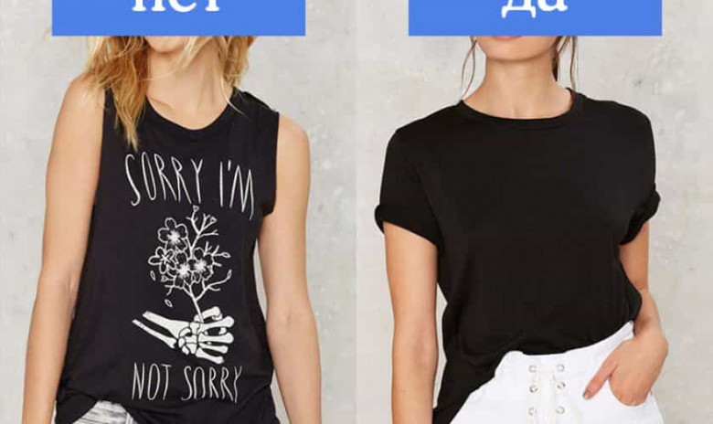 Пусть футболка с названием местной футбольной команды или музыкального фестиваля 2006 года останется твоей домашней одеждой или просто памятным сувениром — в качестве обычной одежды она будет смотреться как минимум странно.