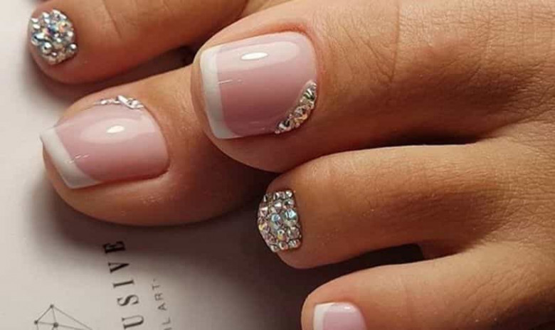 Педикюр со стразами - модный тренд лета 2017 (Фото)
