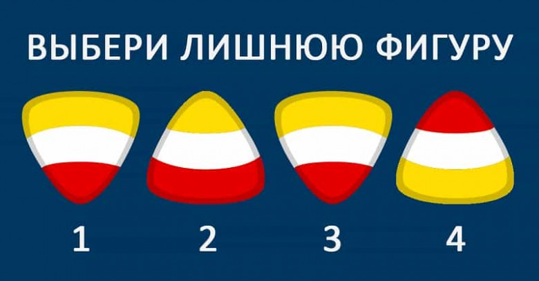 Теперь внимательно посмотри на изображение и определи лишнюю фигуру. Помни, что в психологических тестах нельзя надеяться только на логику, иногда приходится опираться на собственную интуицию. Не подводила ли она тебя раньше?