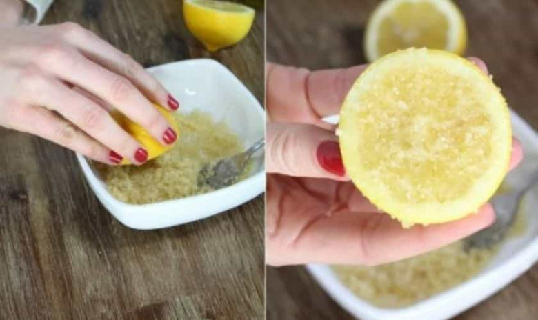 Смешайте 2 столовые ложки лимонного сока с 1 столовой ложкой сахара и подготовьте пасту.
