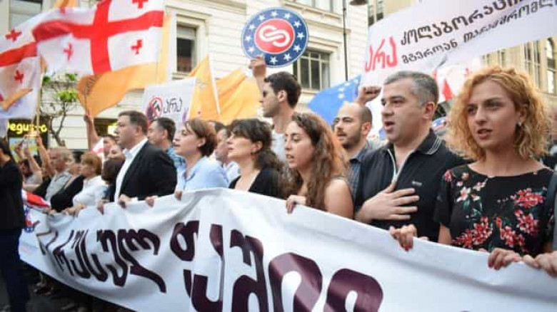 "Этой акцией мы говорим - нет фашизму, который, к сожалению, был продемонстрирован на этой улице несколько дней назад, когда одна довольно маргинальная, но все же ксенофобно настроенная группа выразила абсолютно неприемлемую позицию, которая противоречит грузинским ценностям. Эта акция против них, а также против властей, которые все делают все для того, чтобы такие группы существовали", - заявил Би-би-си один из лидеров партии Серги Капанадзе."Нет российскому фашизму" - под таким лозунгом сотни людей прошли маршем по проспекту Агмашенебели в центре Тбилиси в воскресенье. Шествию, организованному партией "Движение за свободу - Европейская Грузия", попытались противостоять участники "контр-акции", собравшиеся на том же проспекте.