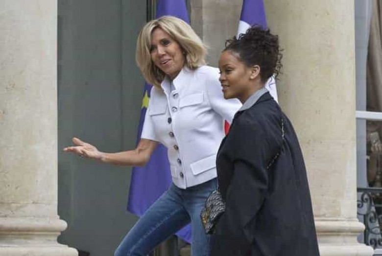 В Елисейский дворец Рири проводила Первая леди Франции Бриджит Макрон.