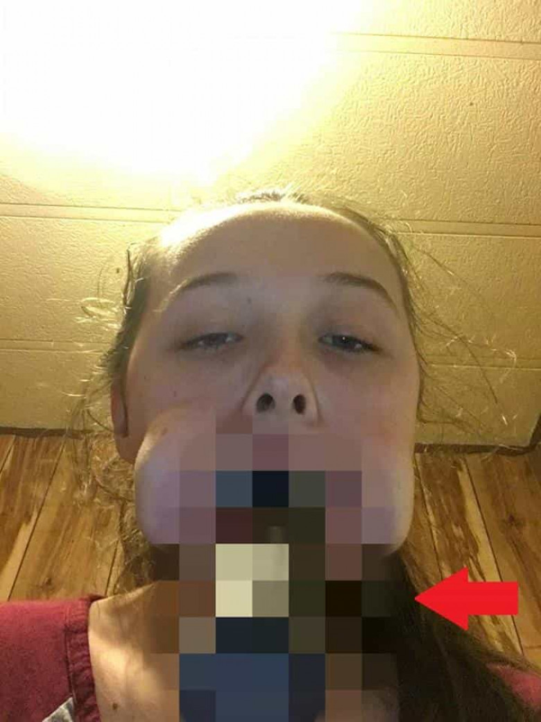 Естественно, подруга назвала слова Кейли блефом, но школьница внезапно на самом деле оказалась с молотком во рту. К счастью, через 10 минут она всё же смогла вытащить его, но снимок уже стал вирусным.