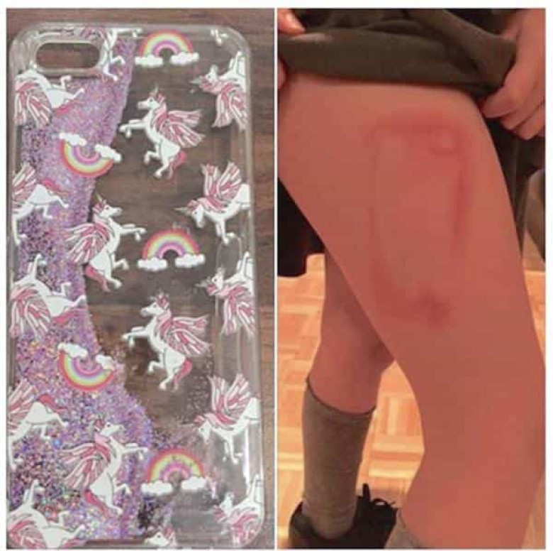 Оливия получила серьезный химический ожог. Дело в том, что телефон был в силиконовом чехле, украшенном единорогами и радугой. В нем же была какая-то странная жидкость с блеском. Никто на это никогда не обращал внимания.