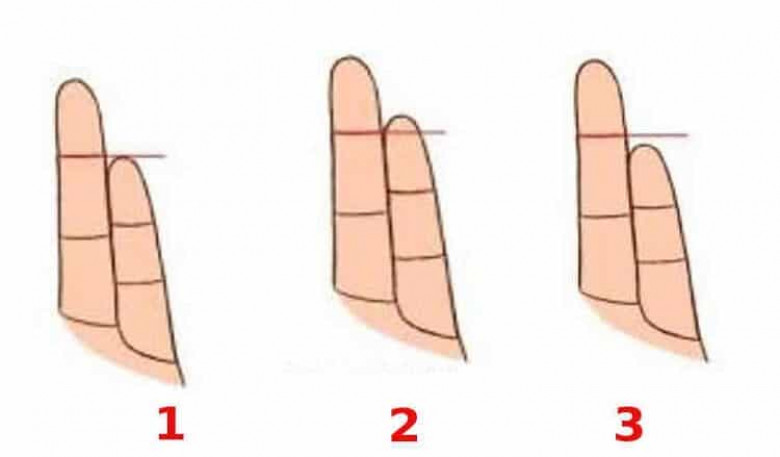 Проводить тестирование лучше всего по тыльной стороне вашей ладони. Будем сравнивать «по росту» два пальца — безымянный и мизинец. Далее предлагается три варианта результатов осмотра нужного пальца.