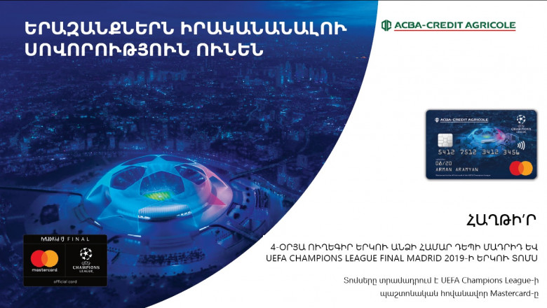 СПОРТ ԱԿԲԱ-ԿՐԵԴԻՏ ԱԳՐԻԿՈԼ Բանկը և Mastercard-ը հայտարարում են մրցույթ, որին կարող են մասնակցել բանկի կողմից թողարկված MasterCard UEFA Champions League քարտի նոր և գործող քարտապանները: