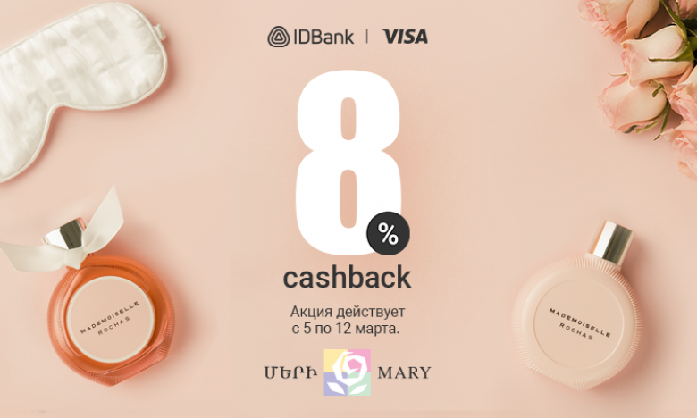 «Напомним, что совместно с компанией Idram мы объявили войну наличным, и это - первая акция кампании «Нет кешу»: так как карты IDBank-а имеют множество преимуществ, особенно в случае безналичных покупок, мы решили предоставить еще более высокий кешбэк. Итак, вы выполняете покупки из сети парфюмерных магазинов «Мэри» по картам VISA IDBank-а и получаете 8% кешбэк», - сказала Татевик Оганесян, руководитель отдела маркетинга Банка.