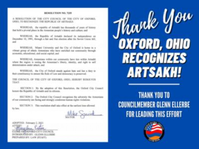 ПОЛИТИКАМэр города Оксфорд штата Огайо США Майк Смит и член городского совета Глен Эллерб признали независимость Арцаха.