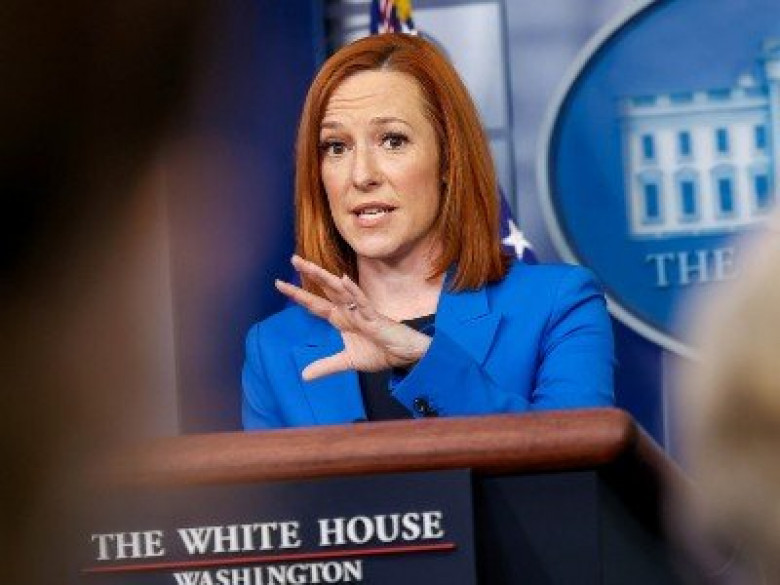 Громкий звук раздался во время традиционного брифинга Псаки для журналистов. На опубликованных в Сети кадрах заметно, что сначала пресс-секретарь Белого дома испугалась.