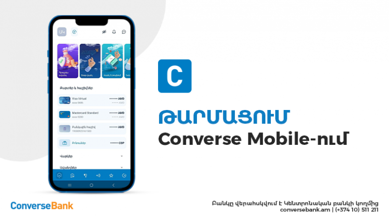 ОБЩЕСТВОConverse Mobile-ի զարգացման ծրագրի շրջանակում Կոնվերս Բանկը ներկայացրել է նոր, թարմացված Հավելվածը՝ ավելի ֆունկցիոնալ ու գրավիչ ինտերֆեյսով: