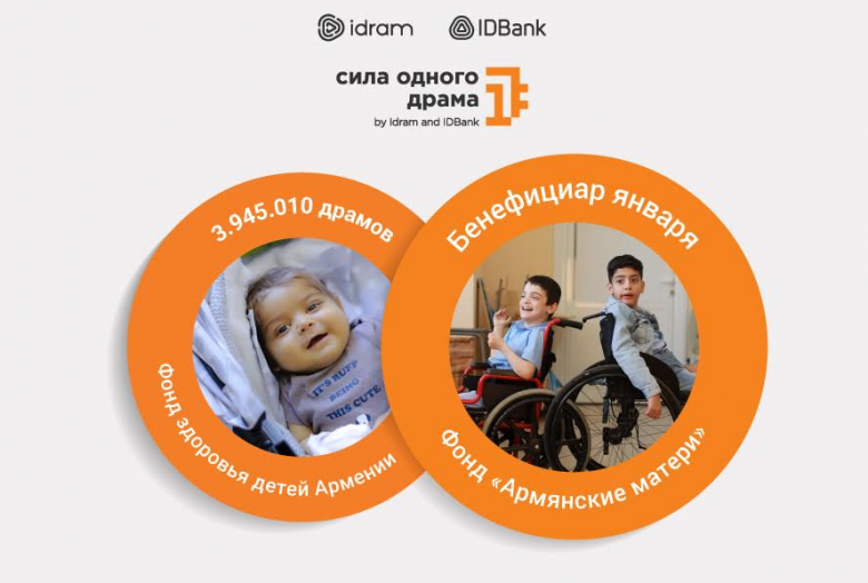Накопленные за январь 2024 года «одни драмы» будут направлены в фонд «Армянские матери». По словам Наринэ Манукян, директора фонда: «Наша история сотрудничества с Idram имеет многолетнюю историю, и мы очень рады, что в этом месяце у нас снова появилась возможность работать с нашими партнерами ради улучшения здоровья сотни детей. Программа чрезвычайно важна для нас, поскольку в этом году мы привлекли детей с ограниченными возможностями, насильно переселенных из Арцаха, которым также необходимо реабилитационное лечение. Они будут бесплатно получать реабилитационную терапию в детских реабилитационных центрах «Дом мечты 1» и «Дом мечты 2».