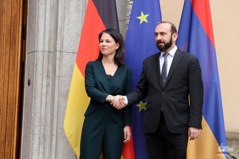 БЛОГМинистр иностранных дел Германии Анналена Бербок поприветствовала министра иностранных дел Армении Арарата Мирзояна в Берлине. Стартовала встреча двух министров. Об этом сообщает пресс-секретарь МИД РА Ани Бадалян.