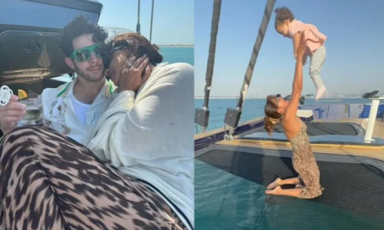 Приянка и Ник покатались на катамаране и весело провели время на пляже Джумейра вместе с 2-летней дочерью Мальти Мари.