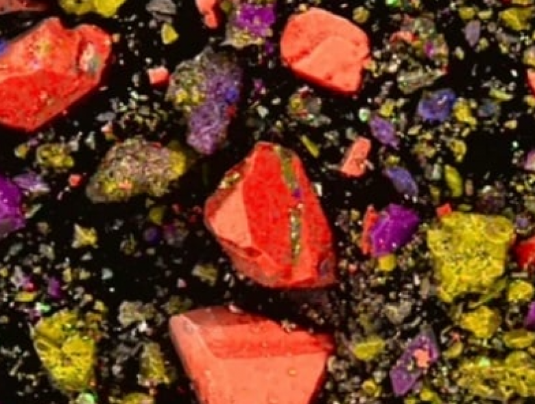 Более 80% проанализированного образца состояло из минералов, придающих ему темно—красный цвет, - в первую очередь гематита. Смесь также содержала манганит и браунит, которые имеют темные оттенки, а также следы других минералов и воскообразных веществ, получаемых из овощей и других органических веществ.