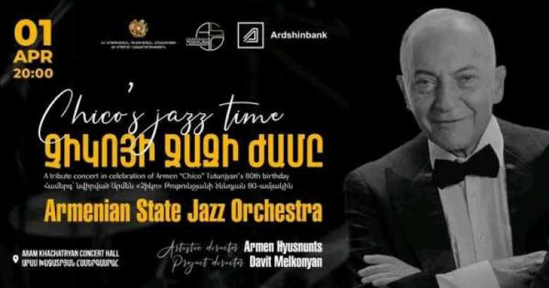 В Концертном зале имени Арама Хачатряна Государственный джазовый оркестр Армении представит концерт, посвященный 80-летию Армена «Чико» Тутунджяна.