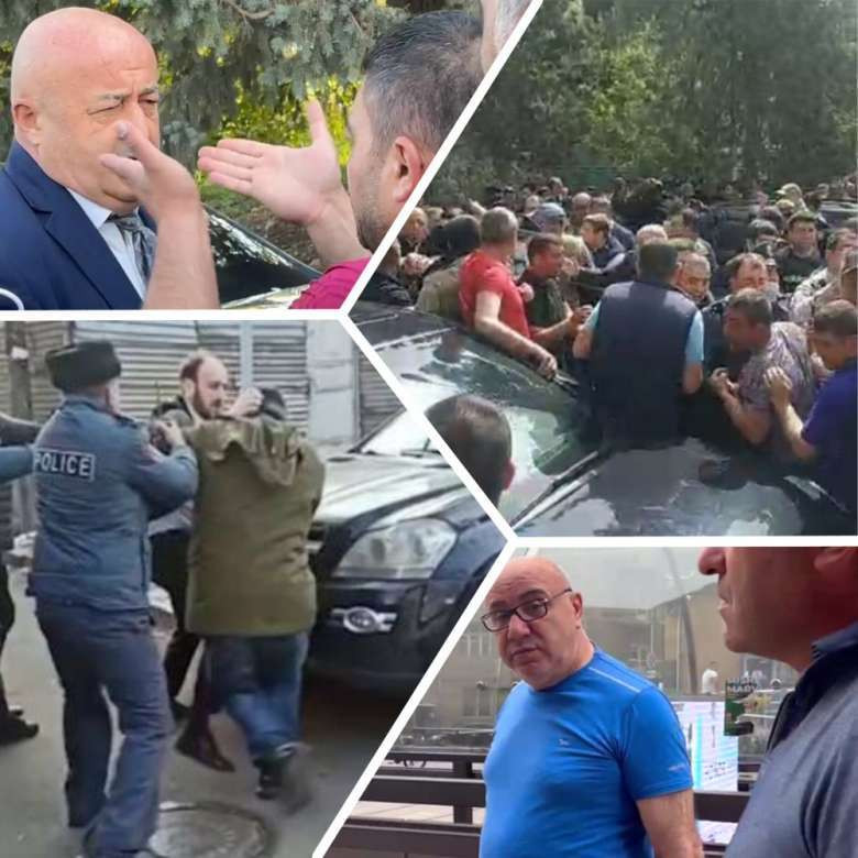 Демонстранты с предательскими криками забросали яйцами депутата Сисака Габриеляна, после чего депутат набросился с кулаками на участников акции.