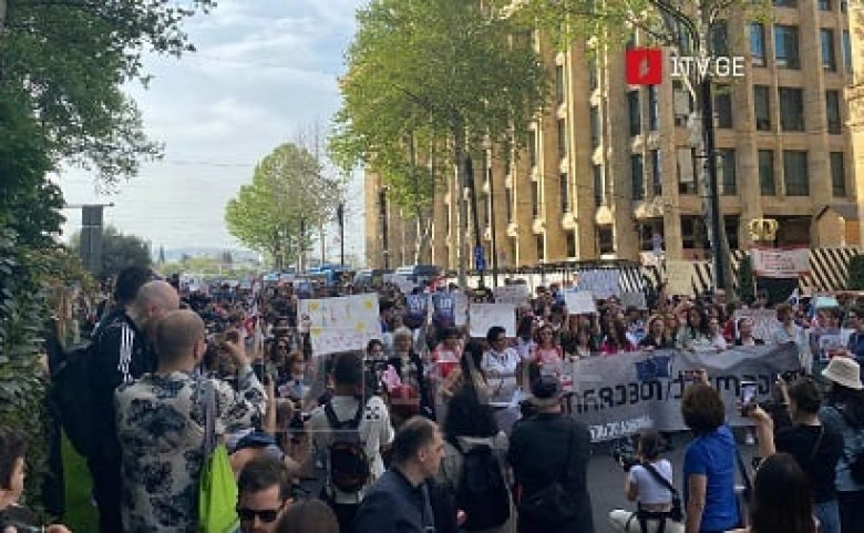 ОБЩЕСТВОВ Тбилиси прошел женский марш против закона об иностранных агентах, сообщает грузинский Первый канал.