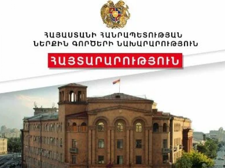 «Министерство обороны Армении проводит работы по разминированию на границе между Арменией и Азербайджаном. В целях обеспечения безопасности граждан полиция осуществляет усиленную службу в зонах разминирования.