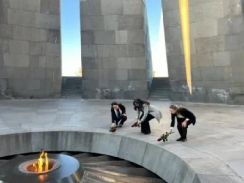 Гости возложили венок к Мемориалу и цветы к Вечному огню, а затем почтили минутой молчания память невинных жертв Геноцида армян.