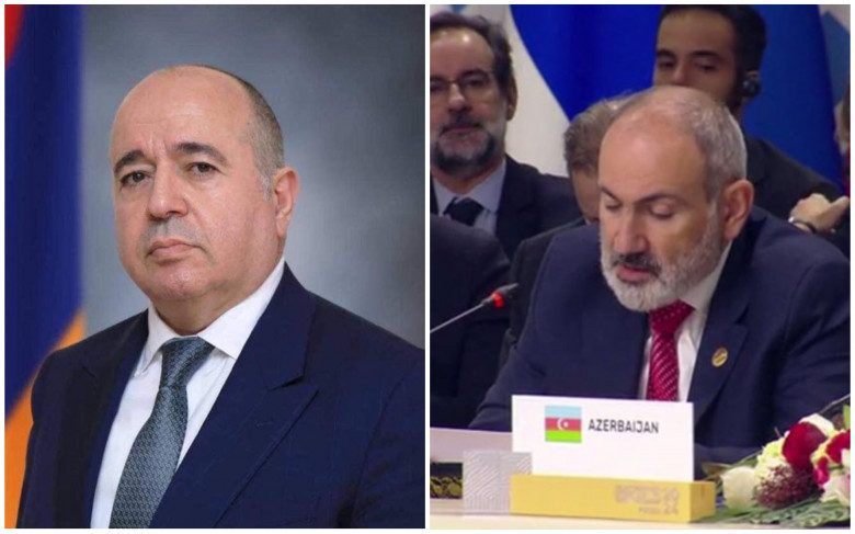 ПОЛИТИКАНакануне на странице в Facebook бывшего министра обороны РА, генерал-майора Аршака Карапетяна была размещена фотография, ставшая известной в Интернете, на которой перед Николом Пашиняном, участвующим в саммите BRICS и сидящим рядом с Ильхамом Алиевым, видна табличка с надписью «Азербайджан», после чего властная пропагандистская машина со своими сателлитами и СМИ подняла большой шум вокруг лидера движения «Всеармянский фронт».