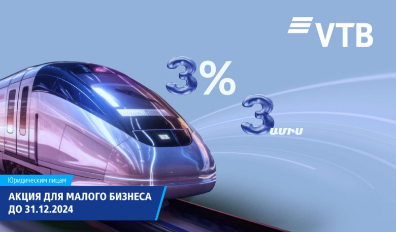 ОБЩЕСТВОВТБ (Армения) снизил до 3% годовых на первые 90 дней ставки по кредитам для малого бизнеса. Условия доступны по программам «Новый партнер» и «Экспресс» для предприятий розничной торговли, производства и сферы услуг. Финансирование можно направить на ведение текущей деятельности, погашение кредитов и инвестиционные проекты.