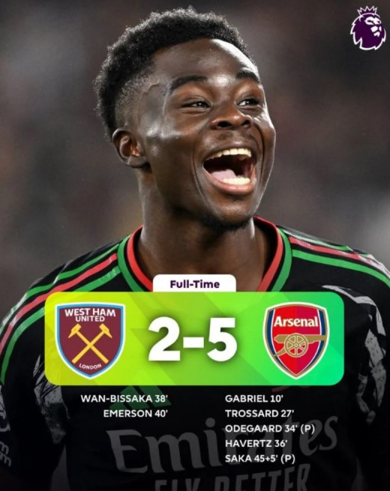 СПОРТВ рамках 13-го тура английской Премьер-лиги «Арсенал» на выезде одержал победу над «Вест Хэмом» со счетом 5:2.