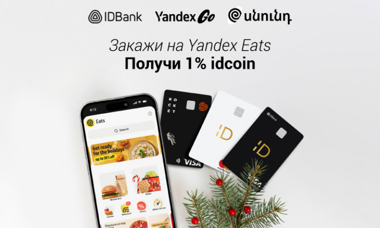 - Зачем вообще мучиться и готовить, если готовка не самый большой ваш талант? Особенно если есть возможность заказать все любимые блюда из любимых ресторанов и кафе. От мясных горячих блюд до легких салатов, от восточных сладостей до самых популярных тортов и выпечки — вы можете спокойно заказать через Yandex Eats, оплатить любой картой IDBank-а, получить 1% idcoin и провести свободное время с близкими. А накопленные idcoin-ы можно потратить позже именно с любимыми. Это предложение действует до 31 января 2025 года.
