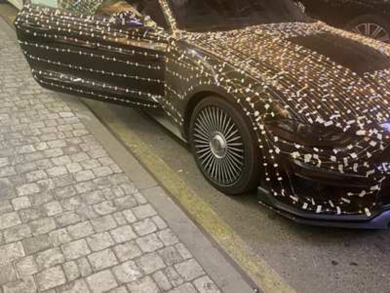 Появление такой автоелки производит фурор даже среди пешеходов, и можно только представить, как гирлянда на колесах отвлекает внимание других водителей.