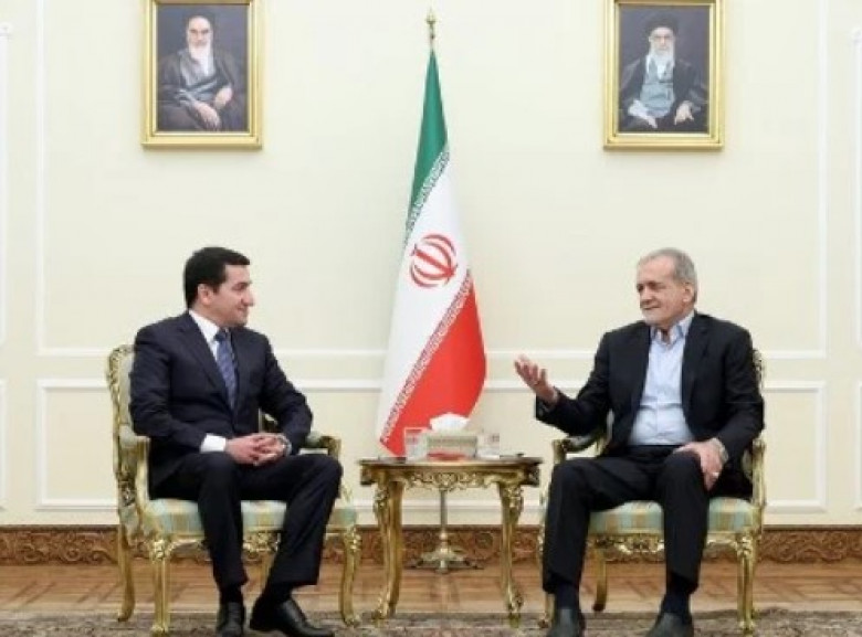 В ходе встречи с помощником президента Азербайджана по внешней политике Хикметом Гаджиевым, Пезешкиан отметил, что отношения между Ираном и Азербайджаном строятся не только на соседских связях, но и на братских и родственных отношениях.