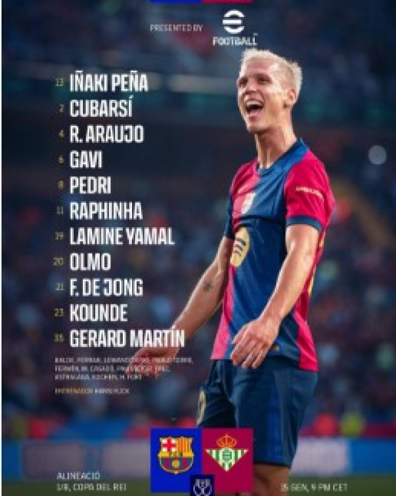 «Барселона»: Щенсны, Форт, Кубарси, Бальде, Гави, Де Йонг, Мартинес, Педри, Рафинья, Левандовски, Ямаль.
