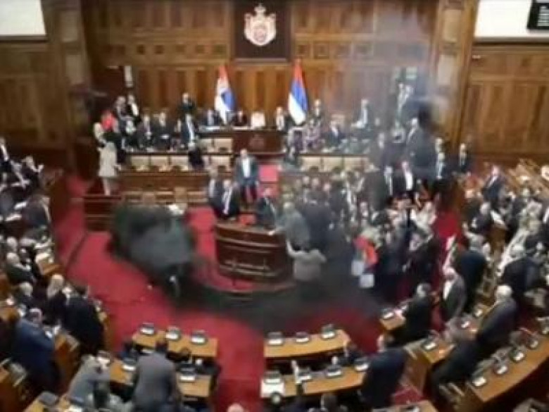 Ранее во вторник депутаты от оппозиционных партий попытались сорвать заседание парламента, применив пиротехнические средства в зале заседаний. Драка началась после попытки одного из депутатов от оппозиции выйти к трибуне вне очереди. Его соратники зажгли цветные дымовые шашки и развернули транспарант с призывом к свержению президента Сербии Александара Вучича, а депутаты от правящей коалиции в ответ развернули государственные флаги страны.