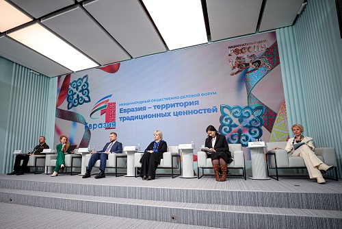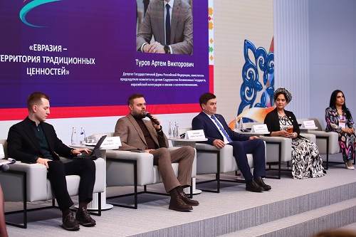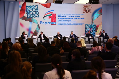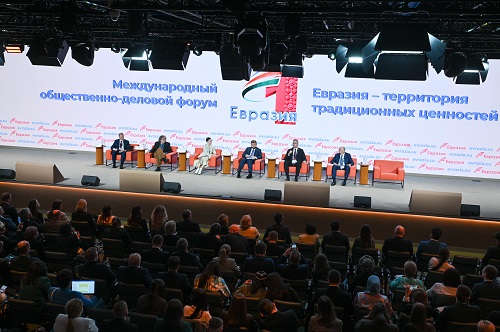 На пленарном заседании «Евразия — территория традиционных ценностей» участники обсудили построение справедливого многополярного мира, в том числе в рамках ЕАЭС, сохранение и продвижение традиционных ценностей народов континента, создание общего евразийского культурного пространства.